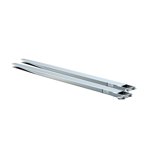 Den galvaniserade modellen har en total längd på 1600 mm och är utformad för att passa gafflar med dimensionen 120x40 mm. Den klarar en lastpunkt på 3000 kg/par vid 600 mm. För säker montering ska den underliggande gaffeln vara minst 750 mm lång, vilket motsvarar minst 60 % av förlängningsgaffelns längd. Den öppna bottenkonstruktionen ger låg vikt och gör gaffeln lätt att montera. Alla modeller är CE-märkta och testade för att uppfylla branschens högsta krav på säkerhet och prestanda.