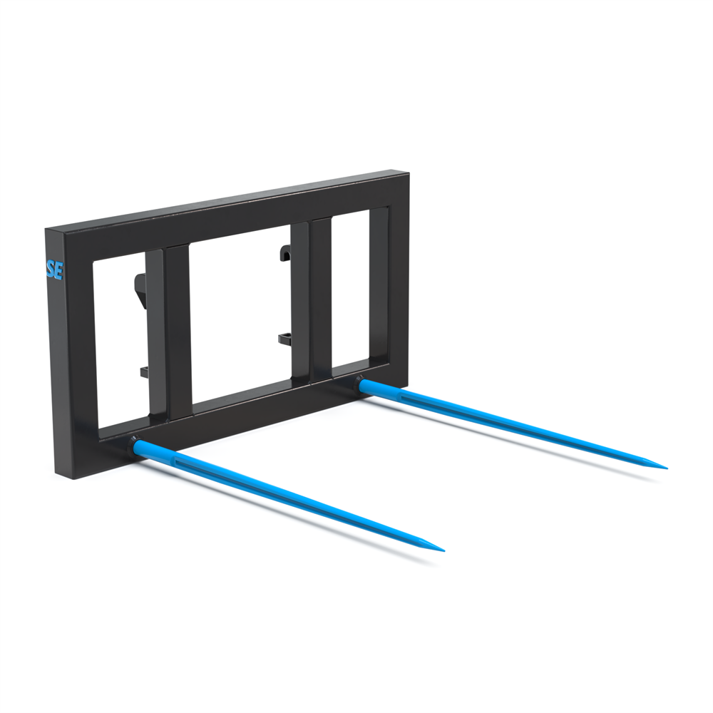 SE Equipments balspjut för kompaktlastare med spjut placerade sida vid sida är särskilt utvecklat för att ge trygg och effektiv hantering av oplastade rundbalar. Genom den horisontella placeringen av de dubbla spjuten får du ett brett och stabilt grepp som minimerar risken för att balen roterar eller glider under transport. Balspjutet är anpassat för Avant- och Multione-fästen, vilket gör det enkelt att montera på din kompaktlastare. Med en lyftkapacitet på upp till 1000 kg och en konstruktion i höghållfast stål är detta ett robust redskap för daglig användning inom lantbruk och gårdsarbete. Den kompakta designenfår du engod sikt och enkel manövrering även i begränsade utrymmen.