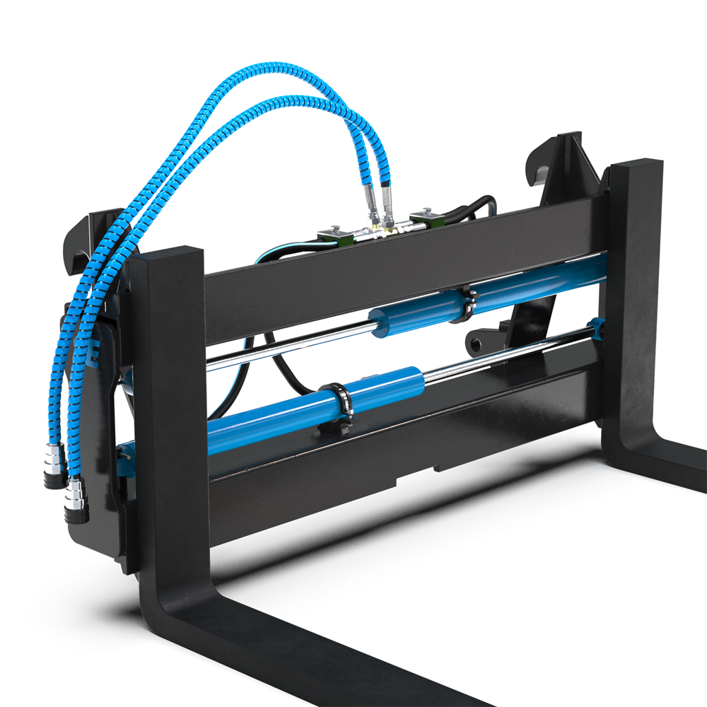 - Hydraulisk gaffeljustering: Ger snabb anpassning av bredd utan att lämna hytten.