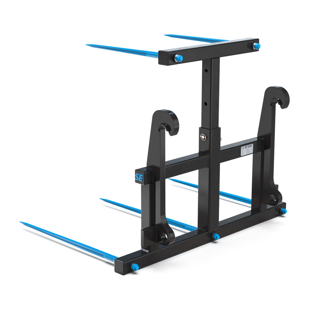 SE Equipments balspjut med Stora BM-fäste är ett robust och mångsidigt redskap som är särskilt utvecklat för att hantera flera oplastade fyrkantsbalar samtidigt. Den är utrustad med fem spjut – tre nedre och två övre – och har dessutom en höj- och sänkbar överdel som ger dig full kontroll över lastning, stapling och förflyttning. Detta gör redskapet till ett idealiskt val för gårdar och lantbruk där stora volymer hö eller halm hanteras dagligen. Spjuten är strategiskt monterade i koniska hylsor för maximal stabilitet, samtidigt som den kraftiga ramen säkerställer lång hållbarhet och hög lastkapacitet. Den välbalanserade designen underlättar arbetet i varierande terräng och skapar ett tryggt och effektivt arbetsflöde.