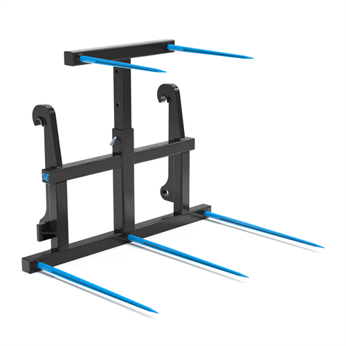 Med SE Equipments balspjut för hjullastare med Stora BM-fäste får du ett professionellt redskap som är byggt för att klara stora volymer balar – snabbt, säkert och effektivt. Den höj- och sänkbara överdelen, de fem spjuten och den stabila konstruktionen gör det till ett pålitligt val för alla som arbetar med fyrkantsbalar i hög takt. Redskapet kombinerar styrka, flexibilitet och hållbarhet, vilket gör det till en investering som håller i längden.