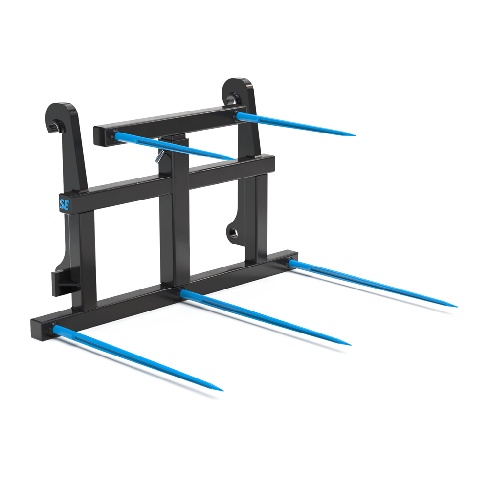 Med SE Equipments balspjut för hjullastare med Stora BM-fäste får du ett professionellt redskap som är byggt för att klara stora volymer balar – snabbt, säkert och effektivt. Den höj- och sänkbara överdelen, de fem spjuten och den stabila konstruktionen gör det till ett pålitligt val för alla som arbetar med fyrkantsbalar i hög takt. Redskapet kombinerar styrka, flexibilitet och hållbarhet, vilket gör det till en investering som håller i längden.
